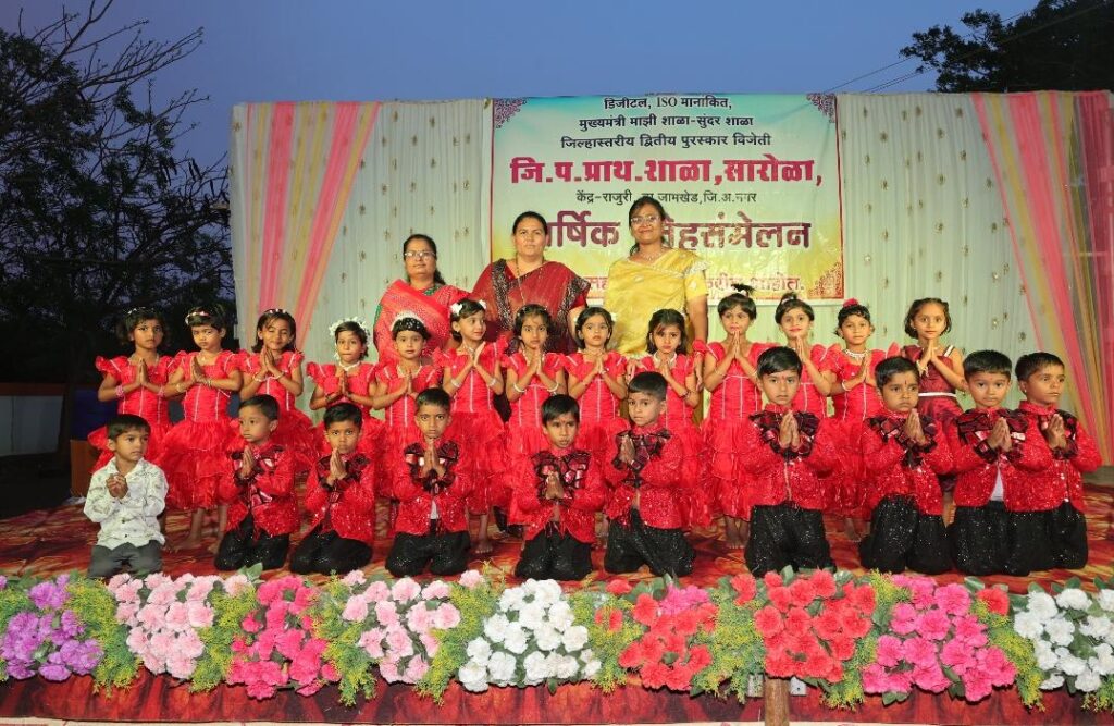 विद्यार्थ्यांच्या सुप्त कलागुणांना वाव देणारे प्रभावी माध्यम म्हणजे शालेय स्नेहसंमेलन. जिल्हा परिषद प्राथमिक शाळा सारोळा, केंद्र-राजुरी, ता. जामखेड, जि. अहिल्यानगर या प्रशालेचे शैक्षणिक वर्ष 2025–26 चे वार्षिक स्नेहसंमेलन शुक्रवार, दिनांक 3 एप्रिल 2026 रोजी सारोळा प्रशालेच्या प्रांगणात अत्यंत उत्साहात व आनंददायी वातावरणात संपन्न झाले. श्री. हनुमान जन्मोत्सव व सारोळा ग्राम यात्रा याचे औचित्य साधत प्रशालेच्या वतीने भव्य दिव्य सांस्कृतिक कार्यक्रमाचे आयोजन करण्यात आले होते.