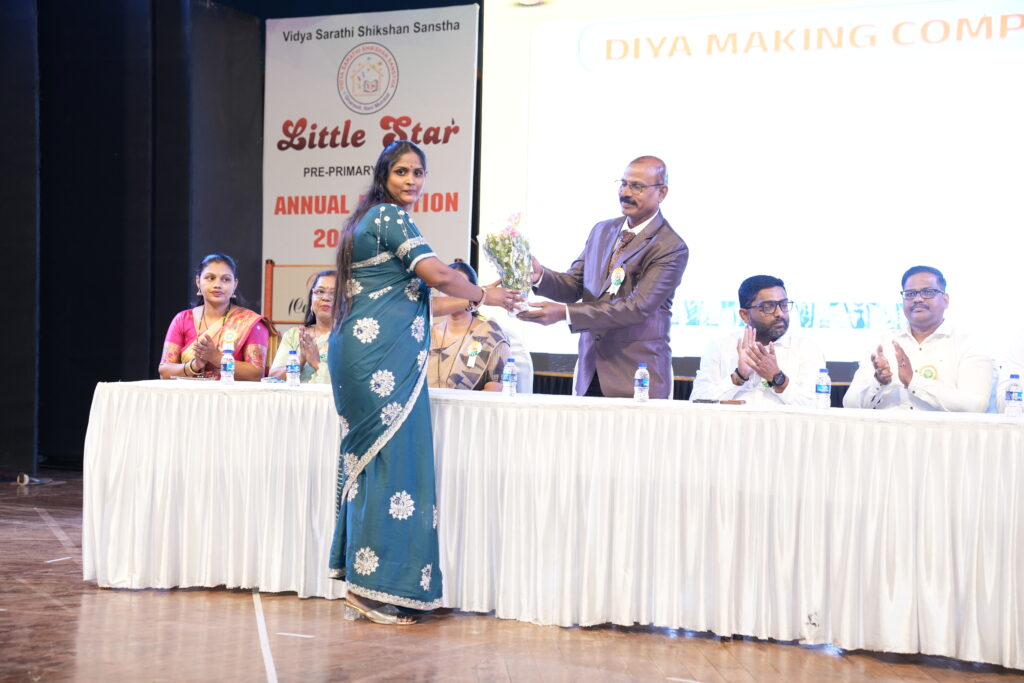 या कार्यक्रमाच्या शेवटी शाळेमधील सर्व शिक्षक व शिक्षिकांचा मान्यवरांच्या हस्ते विशेष सन्मान करण्यात आला. विद्यार्थ्यांच्या कलागुणांना घडवण्यासाठी शिक्षकांनी घेतलेल्या मेहनतीबद्दल आणि त्यांच्या सातत्यपूर्ण मार्गदर्शनाबद्दल मान्यवरांनी मनापासून कौतुक व्यक्त केले. या वेळी शिक्षकवर्गाच्या कार्याचा गौरव करत त्यांचे टाळ्यांच्या गजरात अभिनंदन करण्यात आले, ज्यामुळे संपूर्ण सभागृहात सकारात्मक व प्रेरणादायी वातावरण निर्माण झाले.