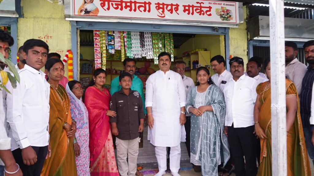 चोंडी (ता. जामखेड) येथील हाळगाव रोड परिसरात नव्याने सुरू झालेल्या ‘राजमाता सुपर मार्केट’ या प्रतिष्ठानाचे उद्घाटन मोठ्या उत्साहात आणि जल्लोषात पार पडले. उद्घाटन समारंभ विधानपरिषद सभापती राम शिंदे साहेब यांच्या हस्ते संपन्न झाला. या प्रसंगी परिसरातील नागरिक, शेतकरी बांधव, व्यापारी वर्ग आणि विविध क्षेत्रातील मान्यवर मोठ्या संख्येने उपस्थित होते. ग्रामीण भागात आधुनिक सुविधा उपलब्ध करून देणारे हे केंद्र भविष्यात सर्वसामान्य नागरिकांसाठी महत्त्वाचे ठरणार असल्याचा विश्वास व्यक्त करण्यात आला.